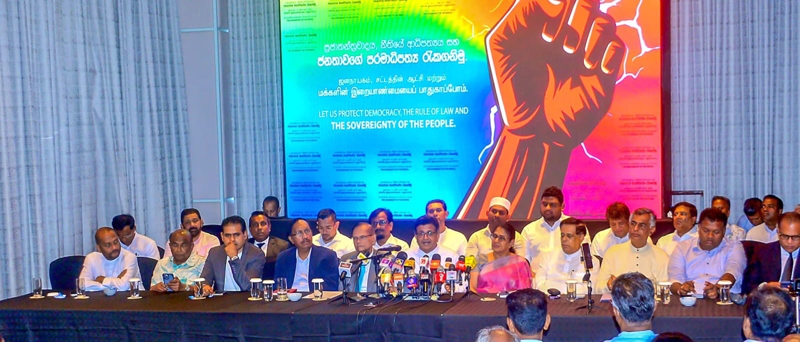 ප්රජාතන්ත්රවාදය, නීතියේ ආධිපත්ය සහ ජනතාවගේ පරමාධිපත්ය රැක ගනිමු යන තේමාවෙන් විපක්ෂයේ පක්ෂ නායකයෝ කොළඹදී රැස්වූහ.